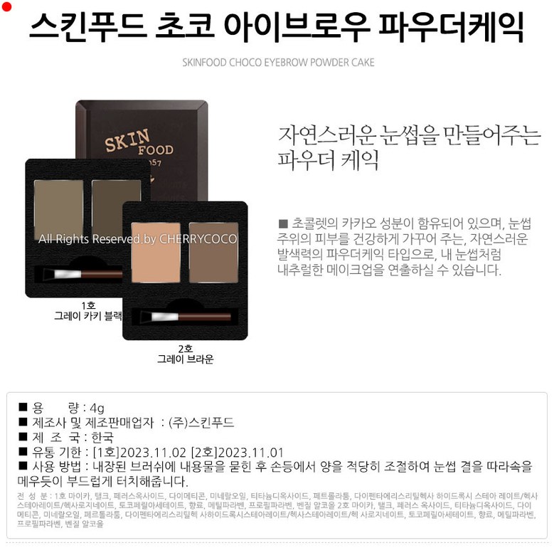 태그: 02그레이브라운+큐트사은품,, 1개, 스킨푸드, 초코_아이브로우_파우더케익,