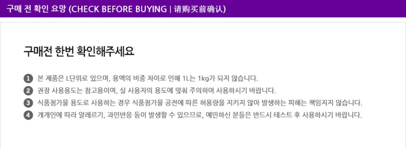 필수 표기정보 용량(중량) 30ml 제품 주요 사양 모든 피부용 사용기한 또는 개봉 후 사용기간 추후 업데이트 예정 사용방법 원액그대로 사용 또는 기 사용하는 화장품류에 한두방울…