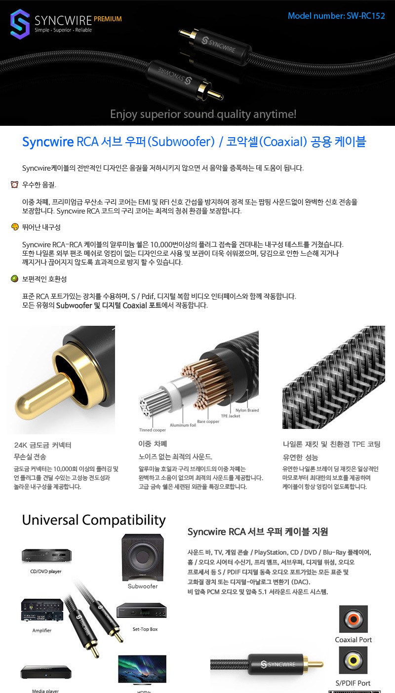 필수 표기정보 품명 및 모델명 품명:하이브리드 광케이블시리즈 HDMI 2.0 AOC 10M / 모델명:상세정보별도표시 인증/허가 사항 법에 의한 인증·허가 등을 받았음을 확인할 수 있는 경우 그에…