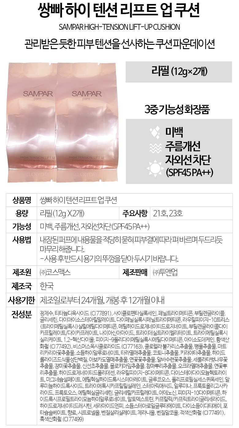 | 화장품법에 따라 기재, 표시하여야 하는 모든 성분 | 상세정보참고 |