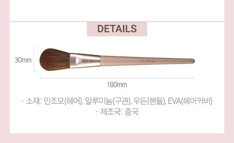 | 화장품법에 따라 기재, 표시하여야 하는 모든 성분 | 인조모(헤어), 알루미늄(구관), 우든(핸들), EVA(헤어커버) |