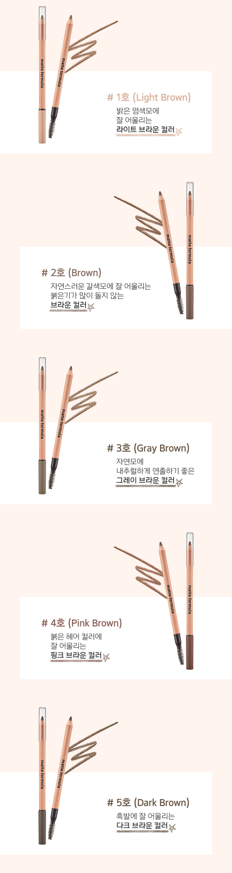 | 사용방법 | 내장된 어플리케이터로 눈썹결을 정리하고, 자연스럽게 눈썹 빈 곳을 채워준 후, 어플리케이터로 한번 더 블랜딩 하여 마무리해줍니다 |