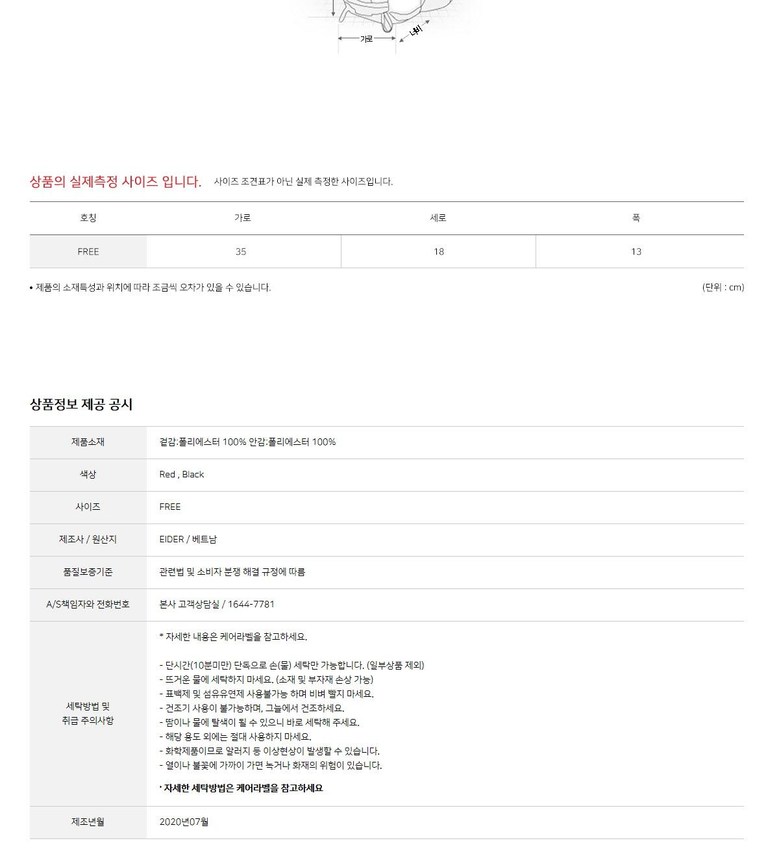 필수 표기정보 종류 상세이미지 참조 소재 상세이미지 참조 색상 상세이미지 참조 크기 상세이미지 참조 제조자(수입자) 상세이미지 참조 제조국 상세이미지 참조 취급시 주의사항 상품택 참조 품질보증기준…