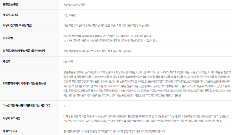 | 화장품법에 따라 기재, 표시하여야 하는 모든 성분 | 상품 상세페이지 참조 |