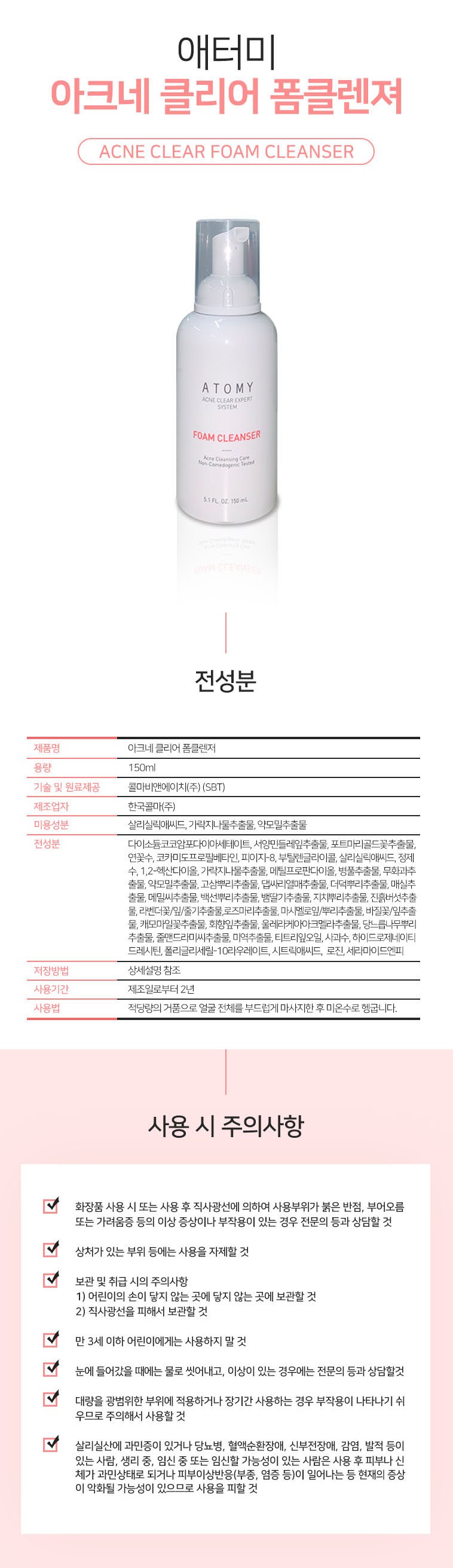 | 제품 주요 사양 | 여드름성 피부용 |