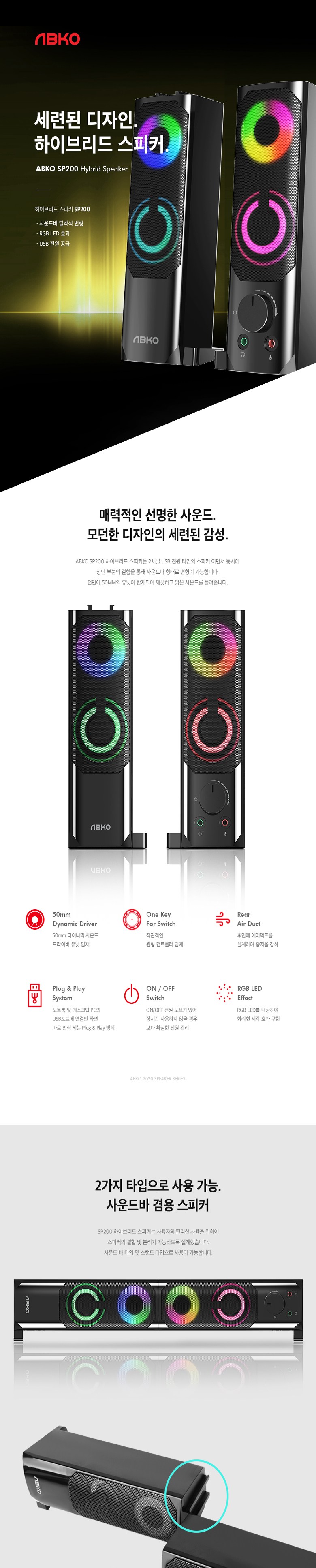 | 품명 및 모델명 | 앱코 SP200 Hybrid 트랜스폼 컴퓨터 사운드바 스피커 블랙 / SP200 |