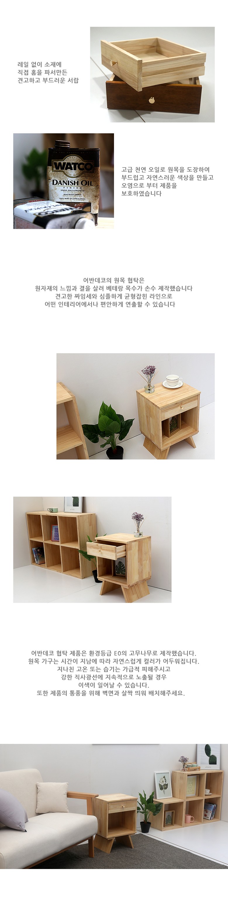 필수 표기정보 품명 원목 다용도 협탁 테이블 KC 인증 필 유무 알 수 없음(업체미제공) 색상 원목 구성품 본품 주요 소재 컨텐츠참조 제조자(수입자) (주) 올리빙/ 알수없음…