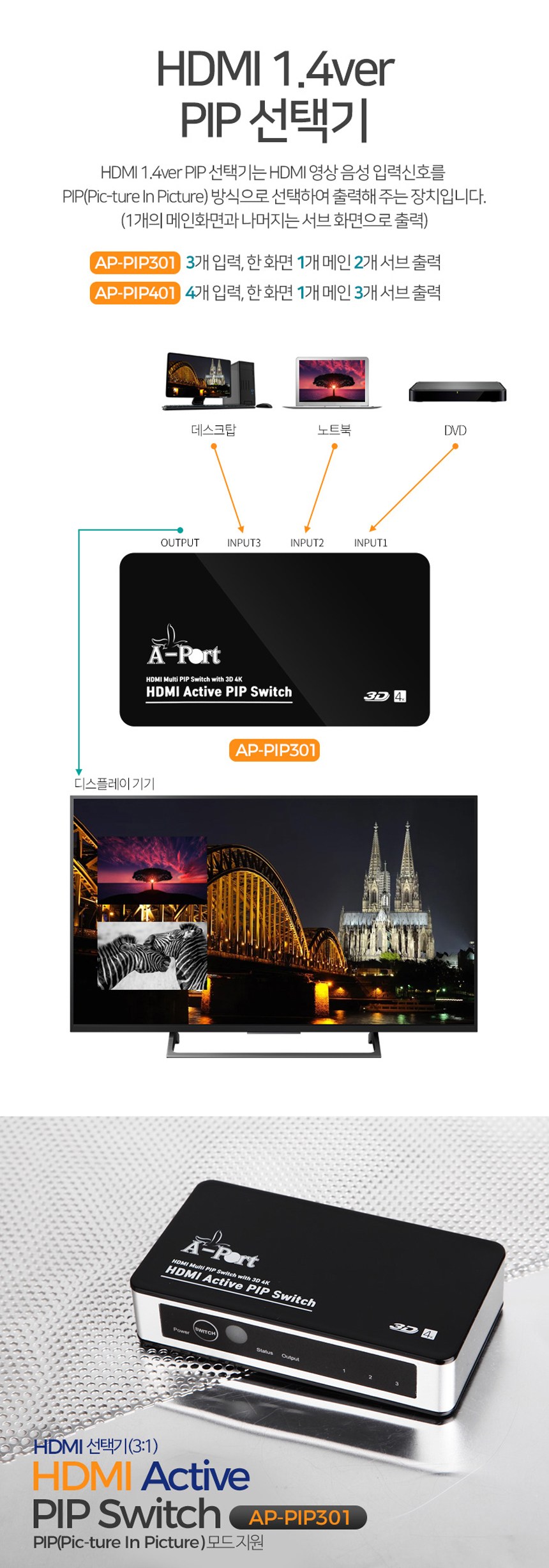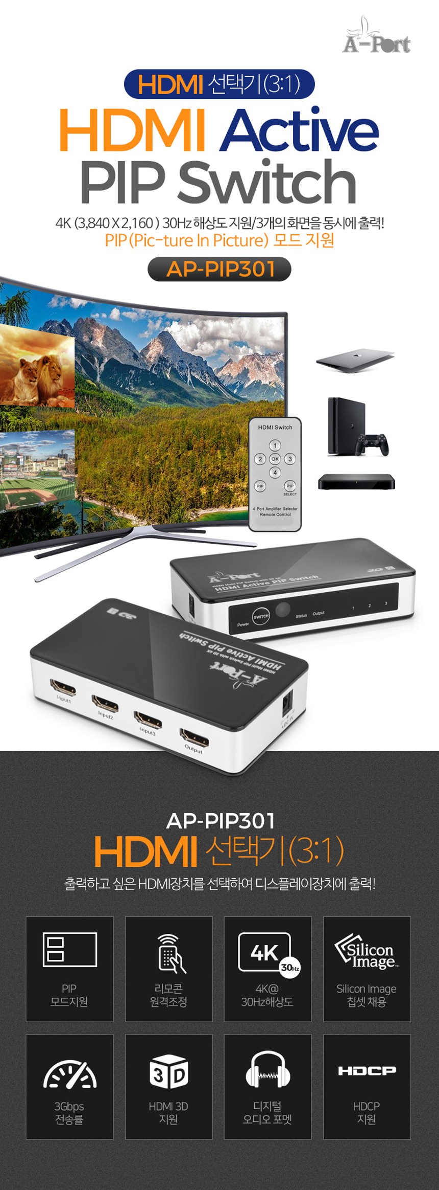 | 품명 및 모델명 | 4K 3×1 HDMI PIP선택기 /AP-PIP301 |