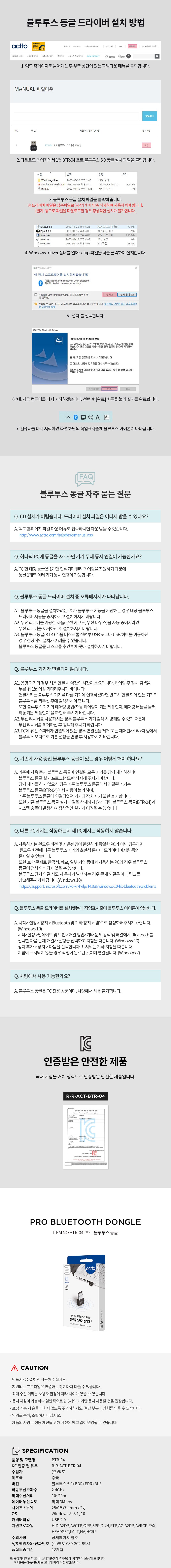 필수 표기정보 품명 및 모델명 기타 / ipTIME BT50 인증/허가 사항 상품설명내포함 제조국(원산지) 중국 제조자(수입자) 상세페이지참조/ 상세페이지참조 소비자상담 관련 전화번호 상세페이지참조 관련