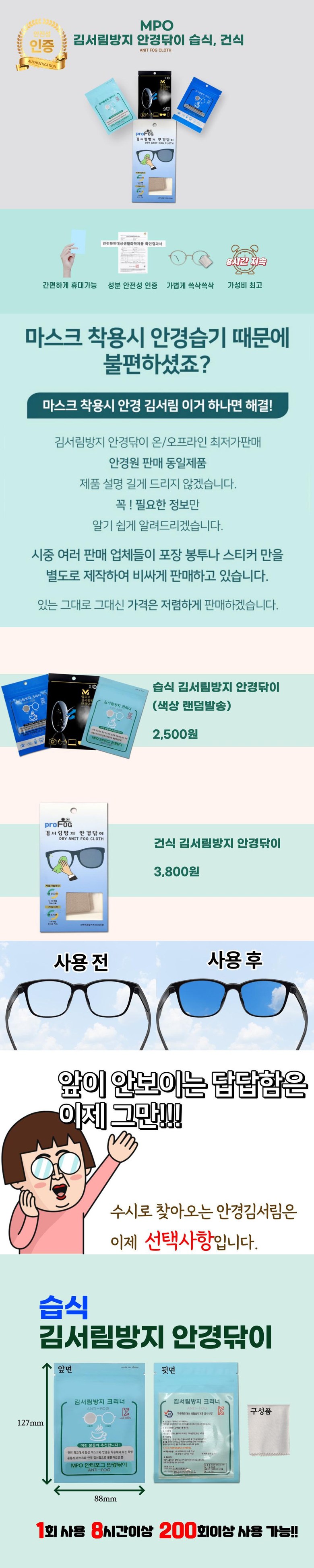 필수 표기정보 품명 및 모델명 김서림차단안경클리너 인증/허가 사항 제 FB21-07-0981호 제조국(원산지) 중국 제조자(수입자) 주식회사 원웨이 (업체미제공으로 정확한 제조, 수입자 알 수 없음) 소비자상담 관련 전화번호…