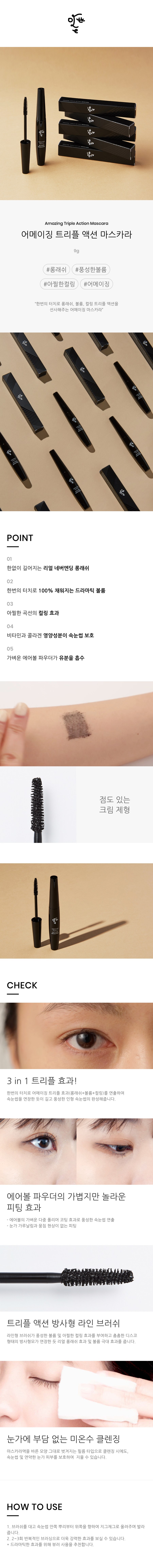 | 화장품법에 따라 기재, 표시하여야 하는 모든 성분 | 정제수, 아크릴레이트코폴리머, 흑색산화철, 카나우바왁스, 피브이피, 1,2-헥산다이올, 팔미틱애씨드, 글리세린, 메틸메타크릴레이트크로스폴리머, 브이피/헥사데센코폴리머, 비즈왁스, 폴리부텐, 스테아릭애씨드, 세테아릴알코올, 테트라하이드록시프로필에틸렌다이아민, 다이메티콘, 라놀린, 솔비탄세스퀴올리에이트, 하이드록시에틸셀룰로오스, 마그네슘알루미늄실리케이트, 글리세릴스테아레이트에스이, 아이소스테아릭애씨드, 폴리비닐알코올, 폴리솔베이트20, 에틸헥산다이올, 글리세릴카프릴레이트, 토코페릴아세테이트, 다이소듐이디티에이, 수용성콜라겐 |