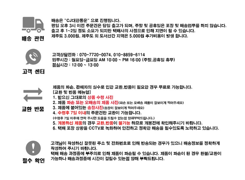 | 품질보증기준 | 제품 이상 시 공정거래위원회 고시 소비자분쟁해결기준에 의거 보상합니다. |
