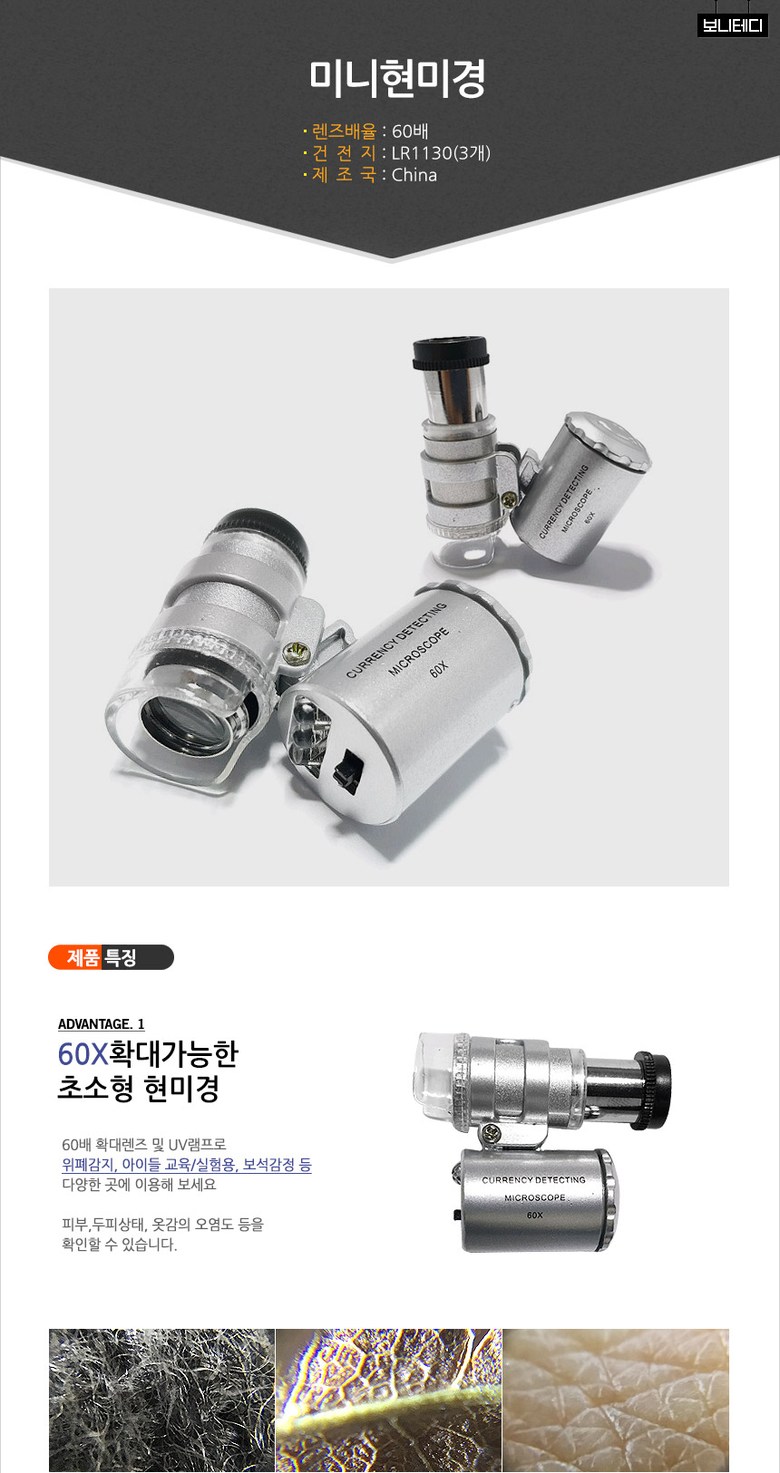 필수 표기정보 품명 및 모델명 디지털 현미경 인증/허가 사항 해외구매대행 상품으로 해당사항 없음 제조국(원산지) china 제조자(수입자) OOTDTY / 유니즈몰 소비자상담 관련 전화번호 01026630015 관련