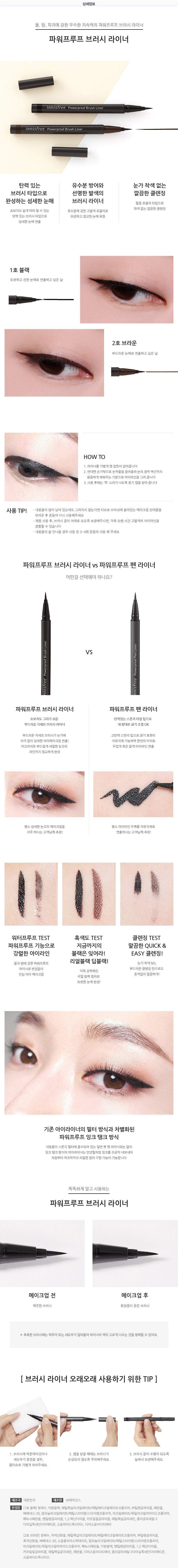 | 사용방법 | 1 라이너를 가볍게 펜 잡듯이 잡아줍니다 2 반대편 손가락으로 눈꺼풀을 들어올려 눈의 점막부근까지 꼼꼼하게 채워주는 기분으로 아이라인을 그려 줍니다. 3 사용 후에는 똑 소리가 나도록 용기 캡을 닫아 줍니다 |