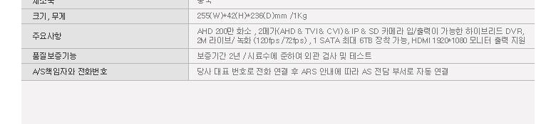 | A/S 책임자와 전화번호 | 상품 상세정보 참고 |