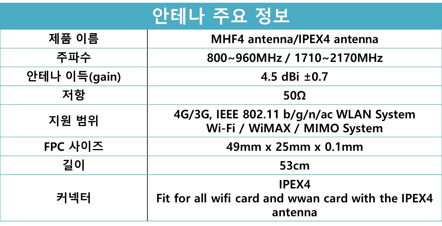 | 품명 및 모델명 | 인텔 노트북 무선랜카드 와이어 내장 안테나 (MHF4/MHF-4 커넥터), |