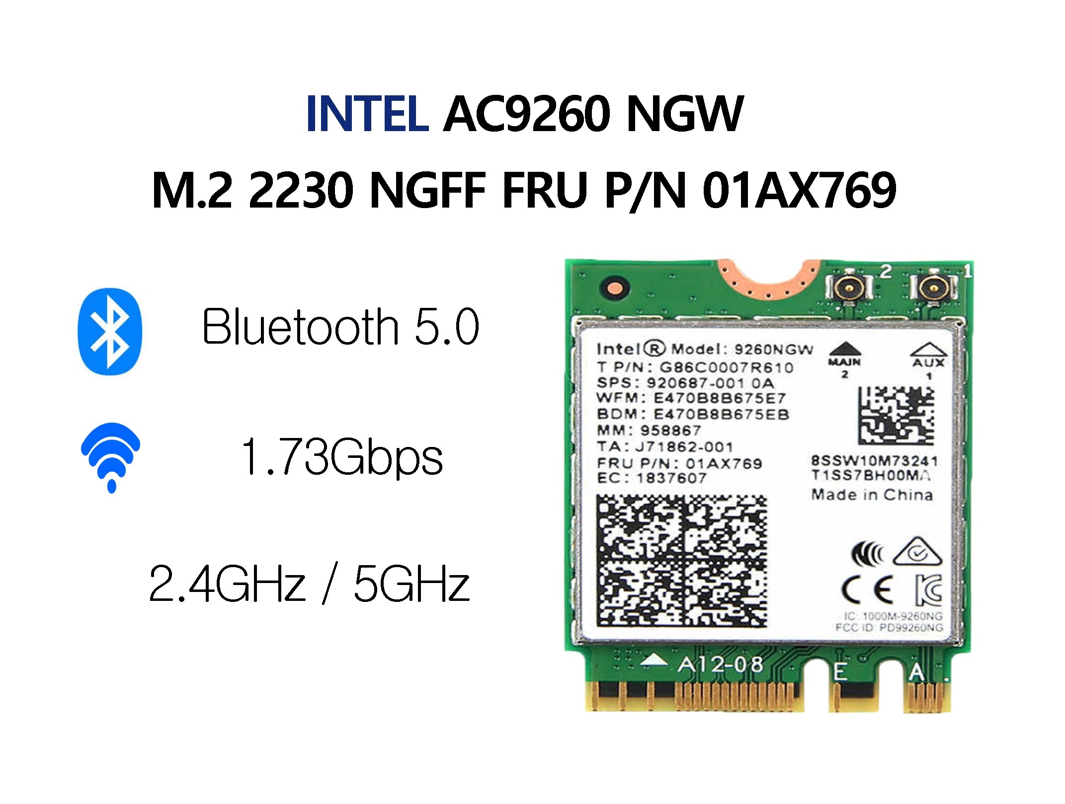| 품명 및 모델명 | 노트북 무선랜카드 인텔 AC9260 NGW WiFi 모듈 WLAN 블루투스 5 M.2 NGFF 01AX769, 내장안테나 |