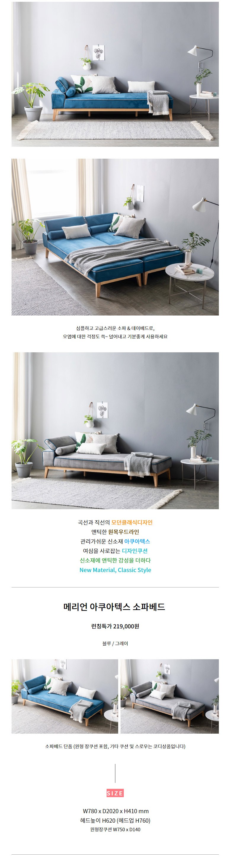 | 품명 | 자네트 메리언 아쿠아텍스 데이베드 3인용 1인용 원목 소파베드 |