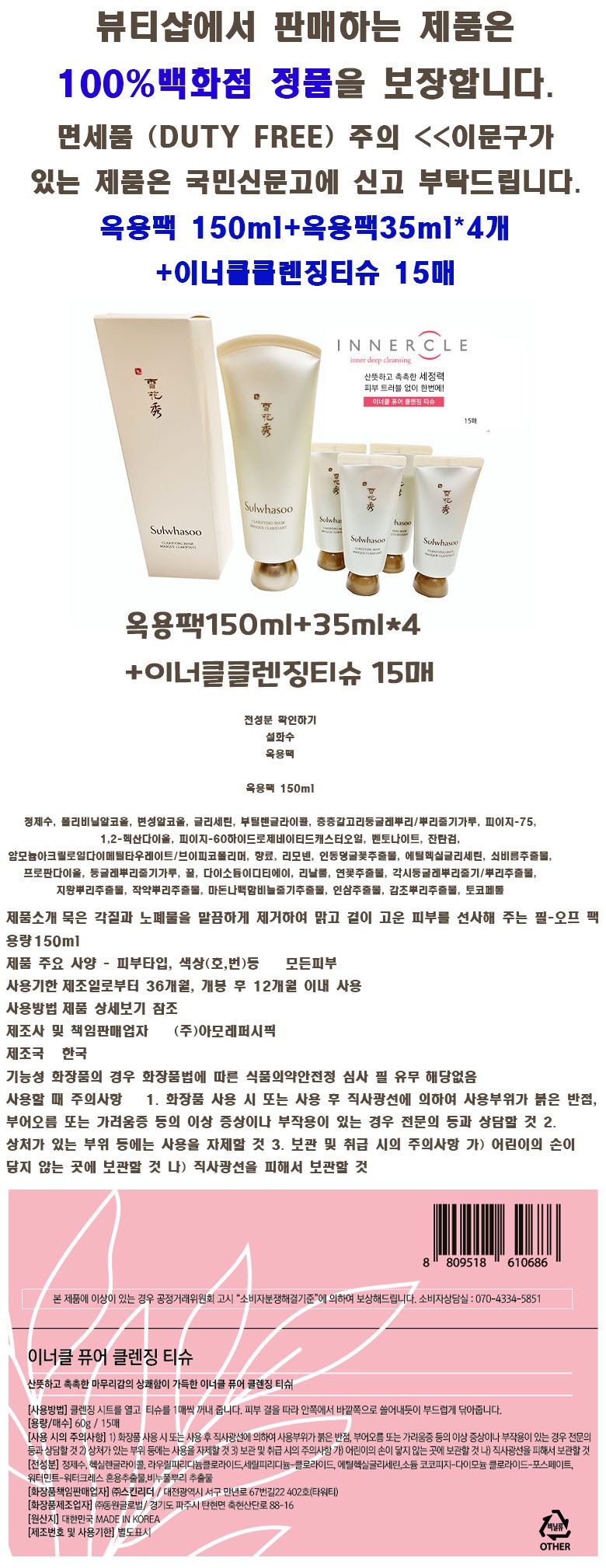 | 화장품법에 따라 기재, 표시하여야 하는 모든 성분 | 상품 상세페이지 참조 |