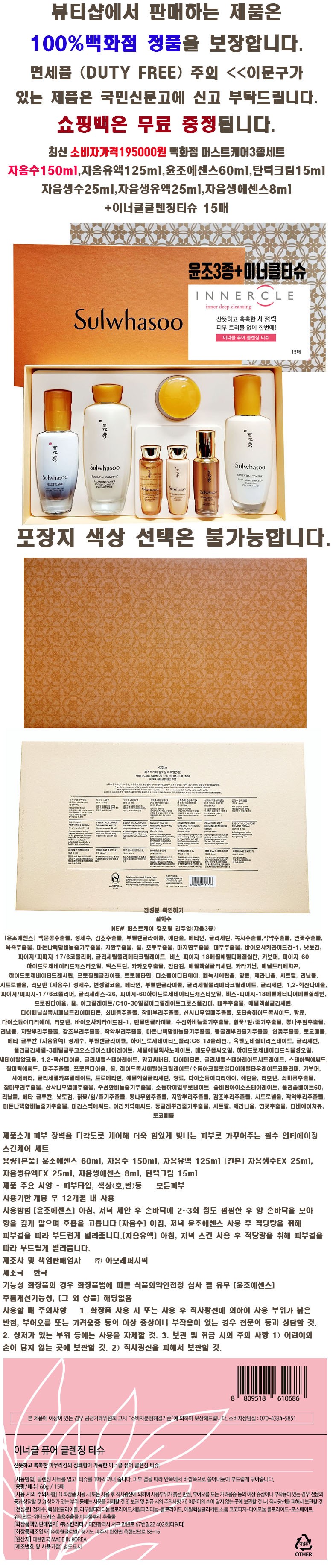 | 화장품법에 따라 기재, 표시하여야 하는 모든 성분 | 상품 상세페이지 참조 |