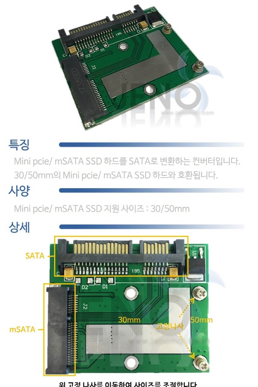| 품명 및 모델명 | 제노 SSD Mini PCIe mSATA to SATA 변환 컨버터 57 x 47 mm |