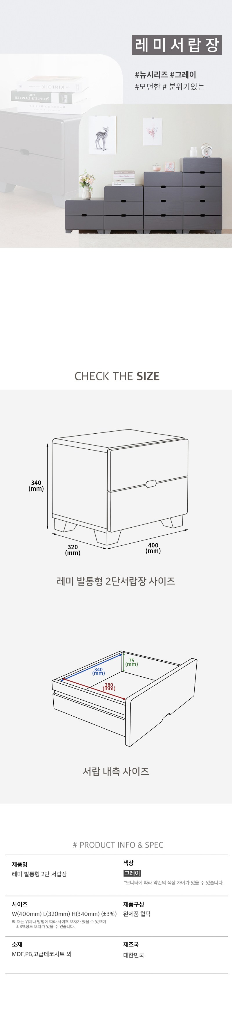 필수 표기정보 품명 컬러스토리 서랍장 600(4단)_그레이 KC 인증 필 유무 알 수 없음(업체 미제공) 색상 그레이 구성품 본품 1개, 벽고정 안전고리 1개, 나사 1개 주요…