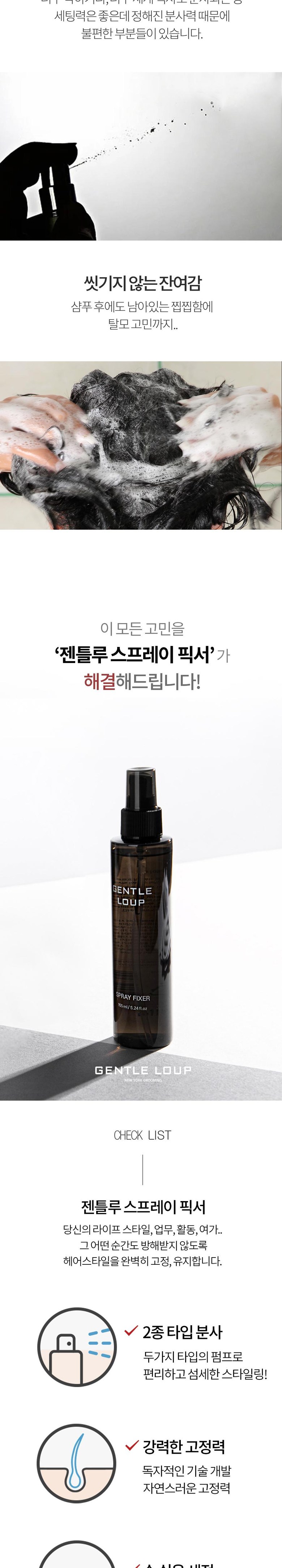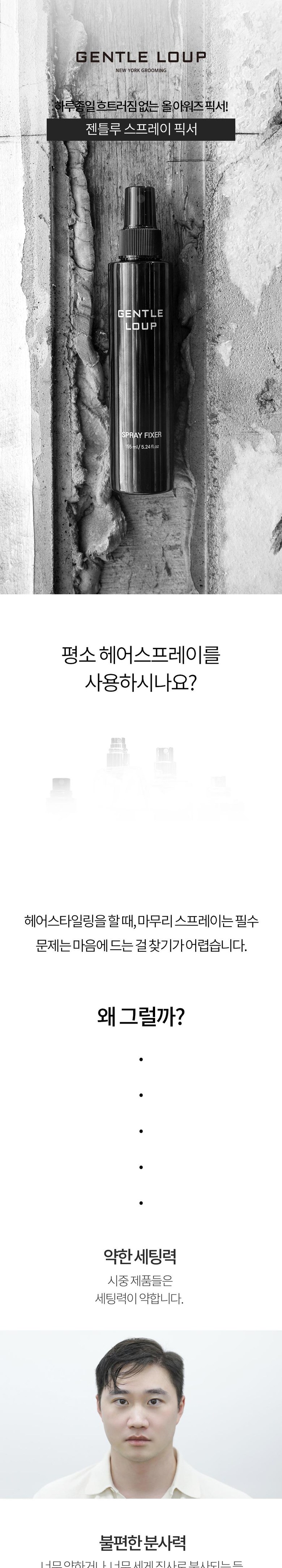 | 제품 주요 사양 | 섬세한 분사력과 우수한 세팅력으로 하루 종일 흐트러짐 없이 헤어 스타일을 고정하는 미스트 타입의 스프레이 픽서입니다. |