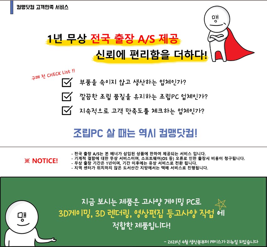 | 제조국 | 메인보드, 그래픽카드, 파워서플라이 : 중국 / SSD : 멕시코 |