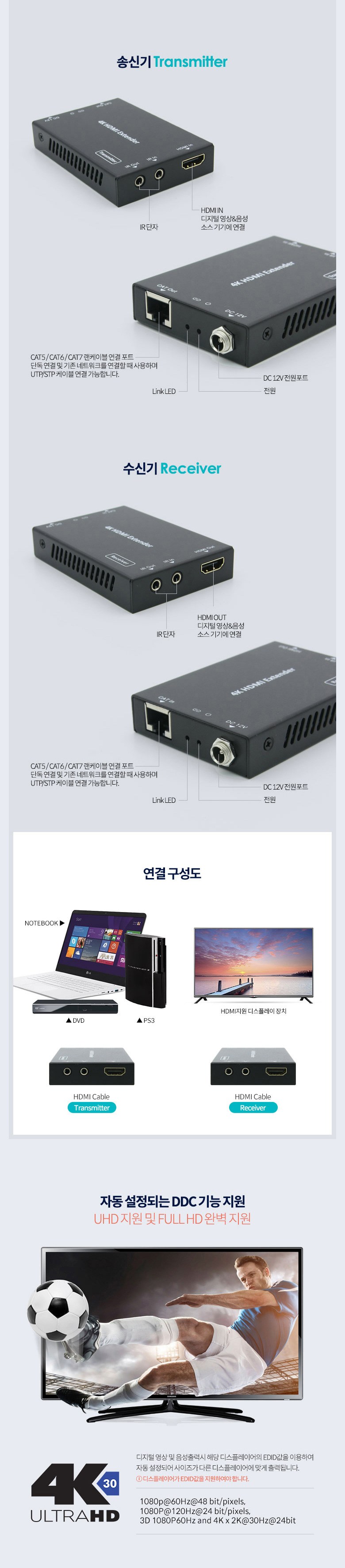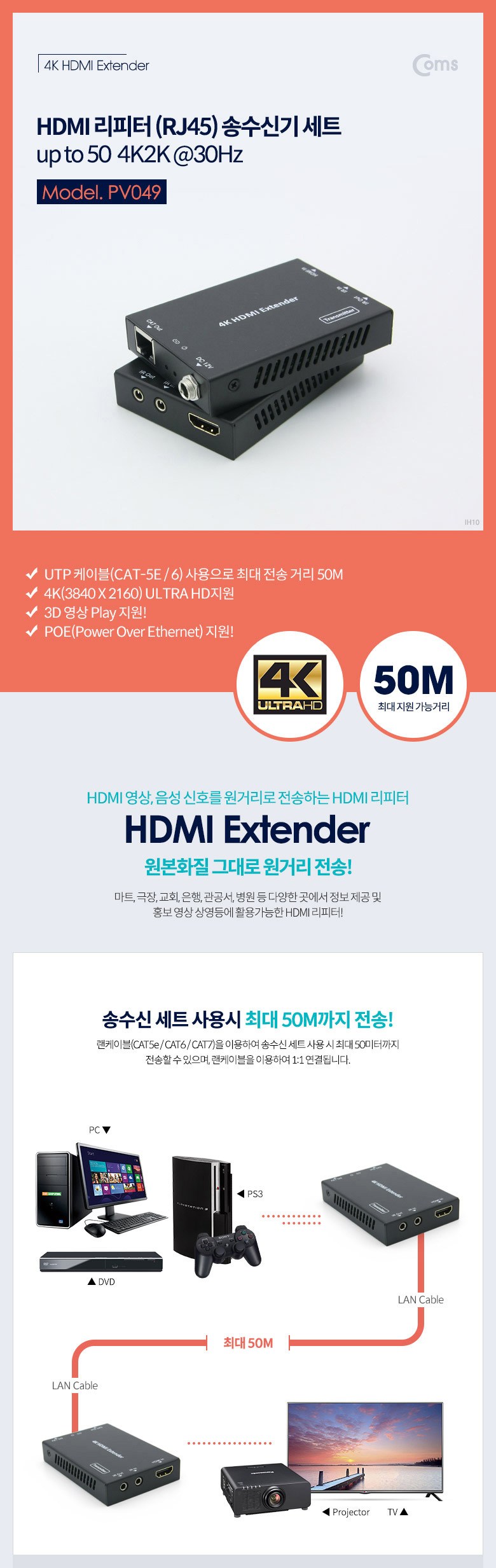 | 품명 및 모델명 | Coms HDMI 리피터(RJ45) 송수신기 세트 / PV049 |