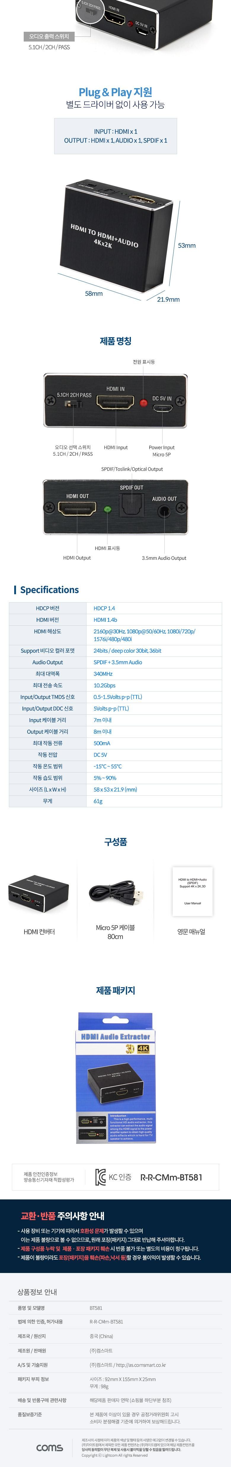 필수 표기정보 품명 및 모델명 AV 2 HDMI 컨버터 인증/허가 사항 상품 상세페이지 참조 제조국(원산지) 중국 제조자(수입자) 마노컴퍼니 소비자상담 관련 전화번호 해당제품은 A/S가 되지 않는…