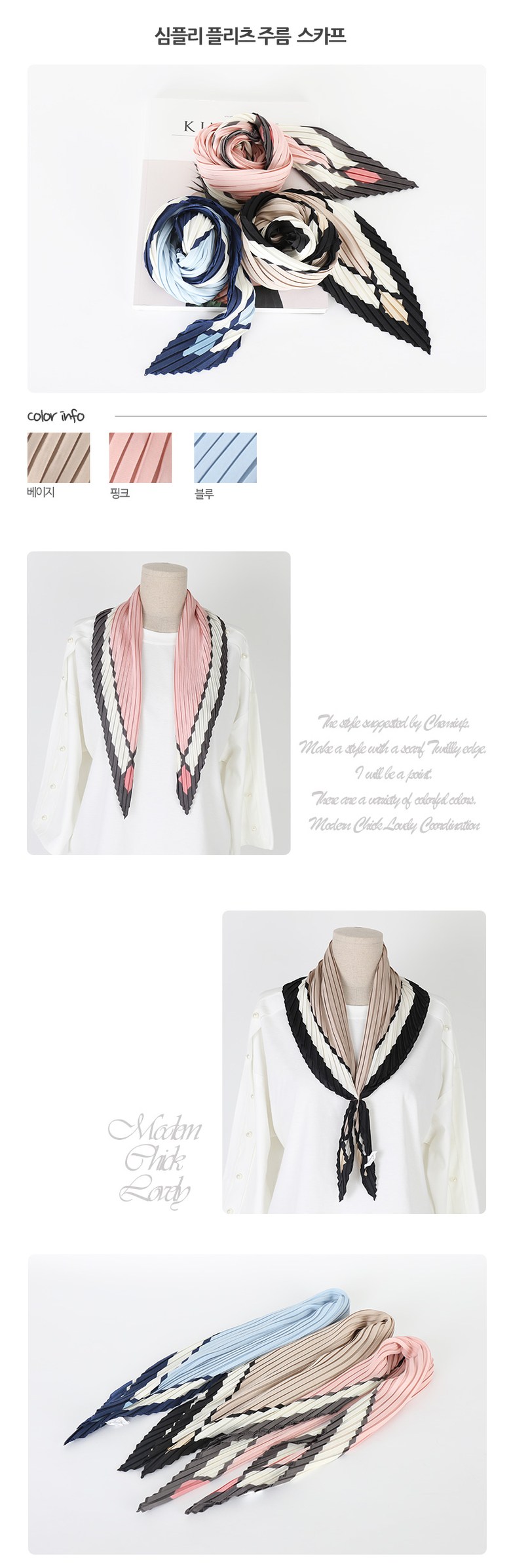 필수 표기정보 종류 여자 스카프 소재 폴리에스터 100% 치수 127 X 55(가로X세로)cm 제조자(수입자) LF 제조국 대한민국 취급시 주의사항 석유드라이 크리닝 품질보증기준 제품 이상 시 공정거래위원회…