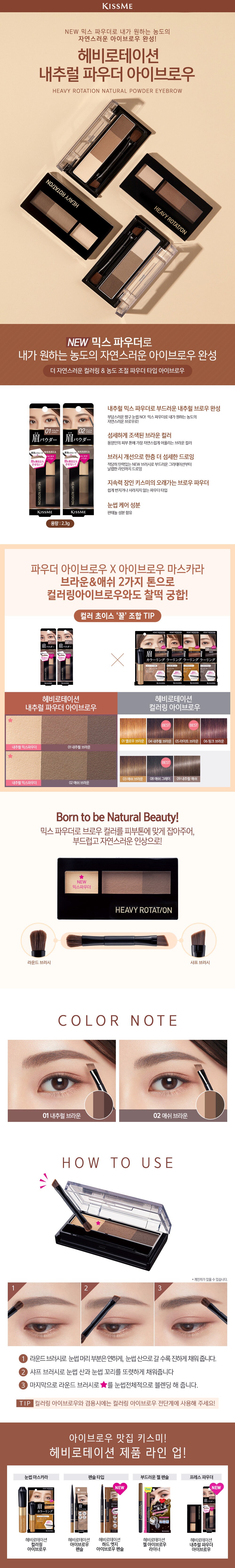 | 사용방법 | 1. 라운드 브러시로 눈썹 머리 부분은 연하게, 눈썹 산으로 갈수록 진하게 채워 줍니다. 2. 샤프 브러시로 눈썹 산과 눈썹 꼬리를 또렷하게 채워줍니다. 3. 라운드 브러시로 NEW 믹스 파우더를 눈썹 전체적으로 블렌딩 해 줍니다. *제품 상세 페이지 또는 한글 라벨 내 사용법 이미지 참조 |