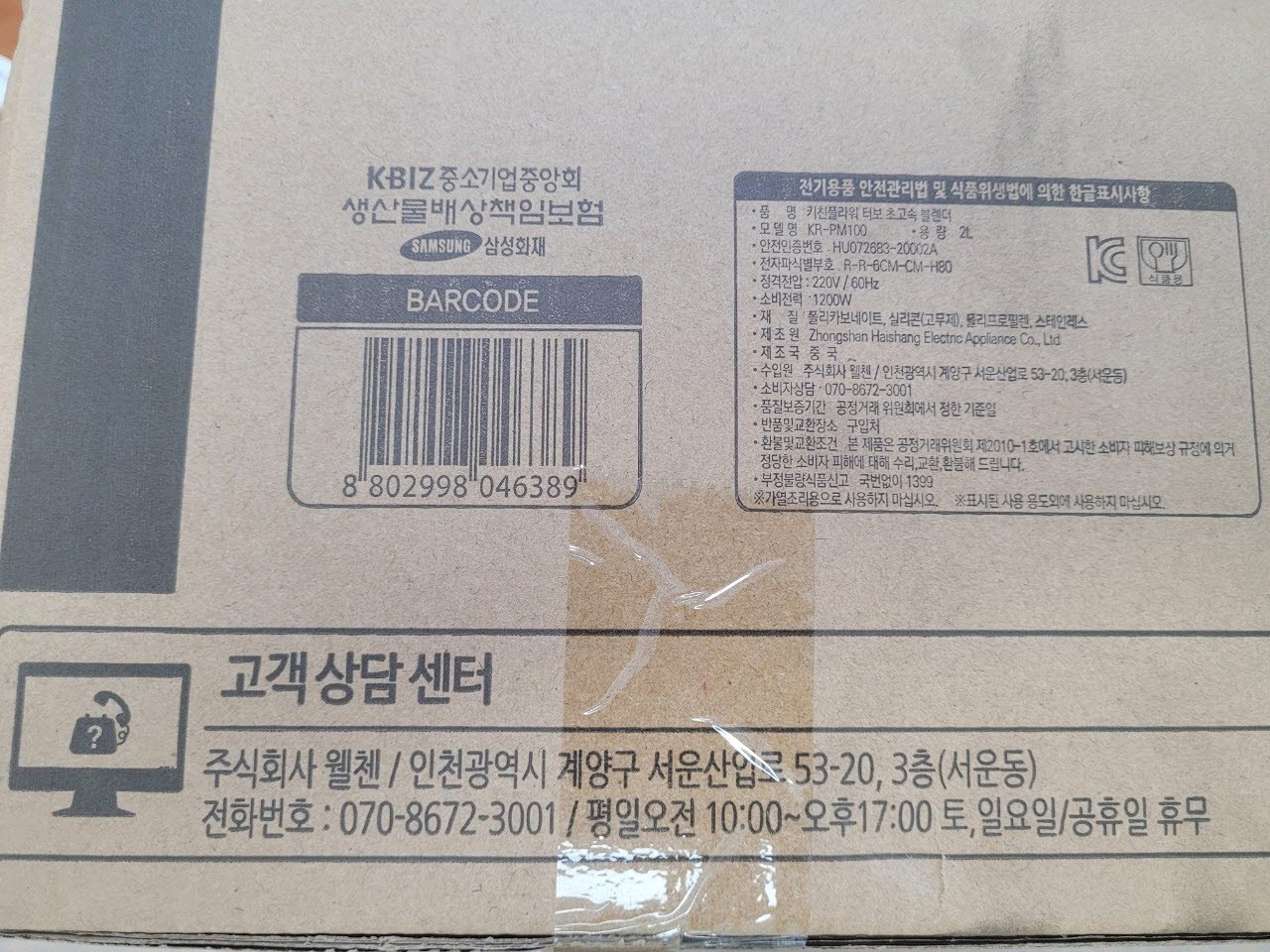 | 제조자(수입자) | Zhongshan Haishang Electric Appliance Co., Ltd/주식회사 웰첸 |