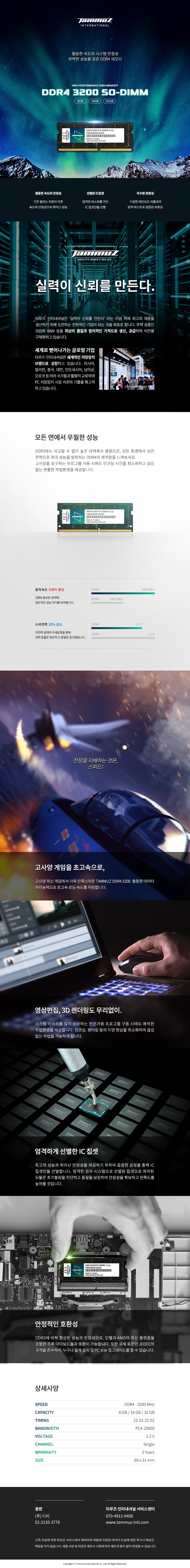 | 품명 및 모델명 | 타무즈 노트북 DDR4-3200 CL22 (8GB) |