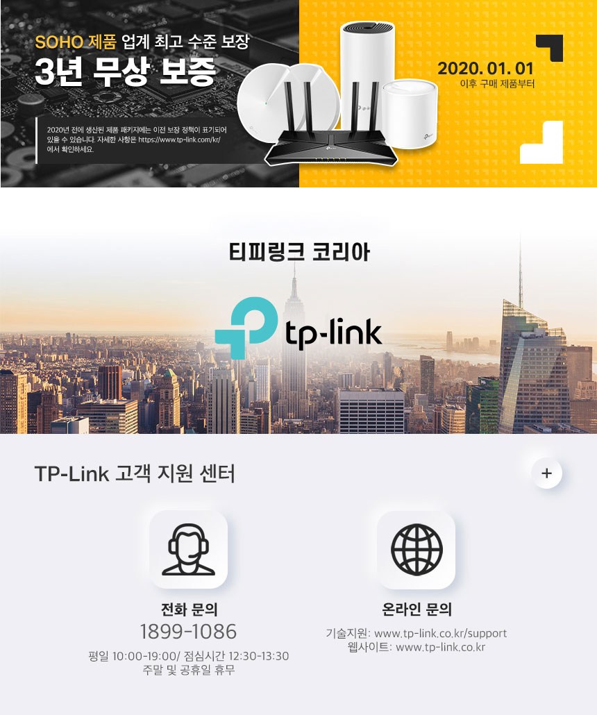 | A/S 책임자와 전화번호 | 티피링크코리아 AS센터 1899-1086 /쿠팡 고객센터 1577-7011 |