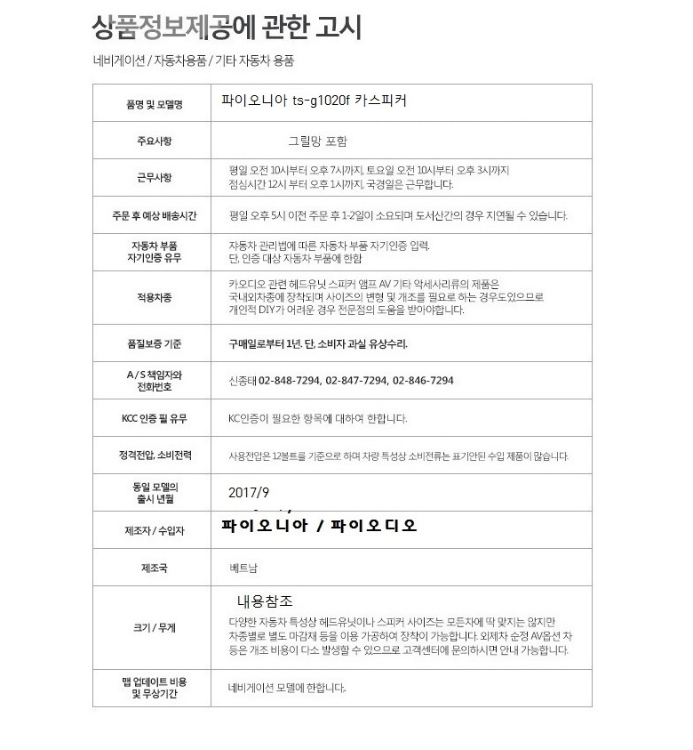 필수 표기정보 품명 및 모델명 상세페이지 참조 인증/허가 사항 상세페이지 참조 제조국(원산지) 상세페이지 참조 제조자(수입자) 상세페이지 참조 소비자상담 관련 전화번호 상세페이지 참조 관련