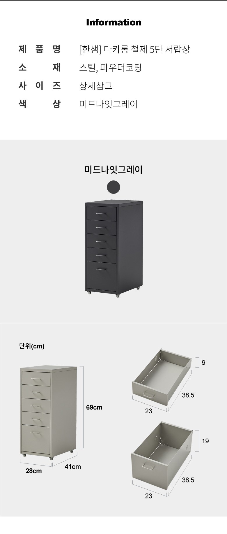 필수 표기정보 품명 및 모델명 컬러스토리 서랍장 400(3단)_화이트 인증/허가 사항 해당없음 제조국(원산지) 대한민국 제조자(수입자) 샤바스 소비자상담 관련 전화번호 쿠팡 고객센터 1577-7011 관련