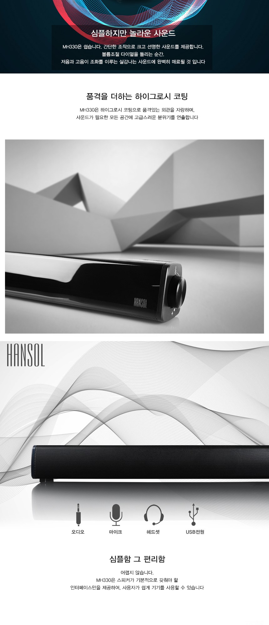 | 품명 및 모델명 | 한솔시스템 사운드바 스피커 MH330(블랙) |
