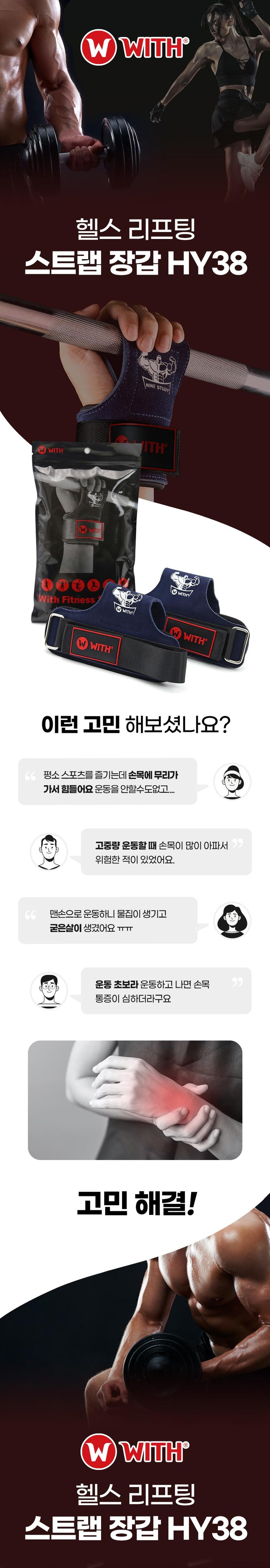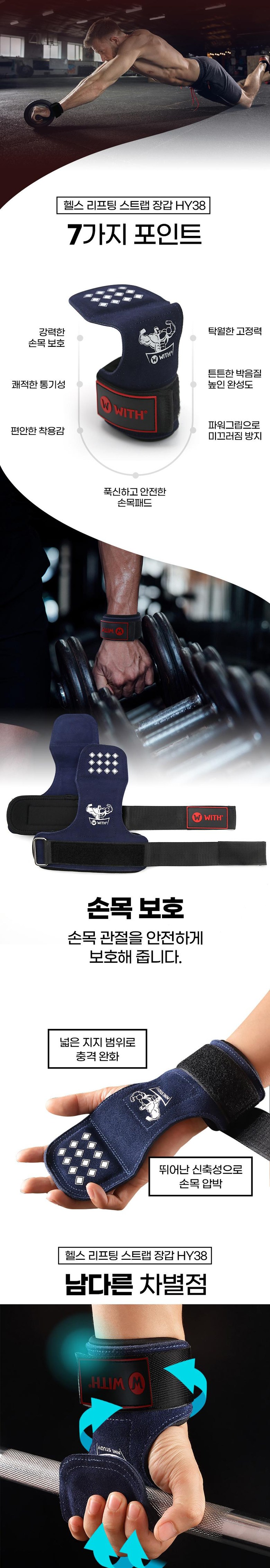 | 품명 및 모델명 | [WITH] 헬스 스트랩, 그립, 아대 남자 여자 헬스 손목보호대 HY38, 1세트 FREE |