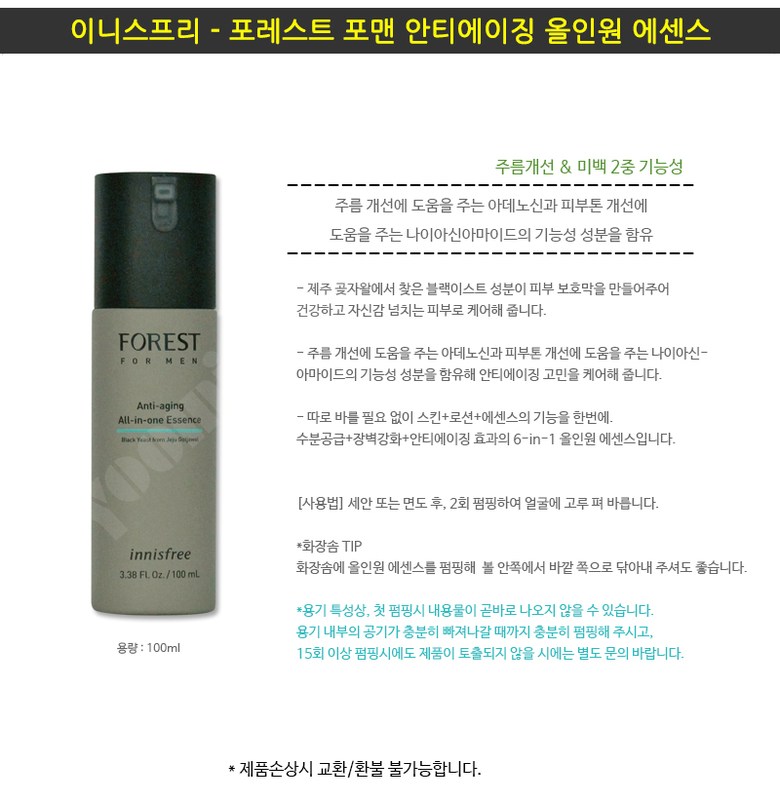 | 화장품제조업자 및 화장품책임판매업자 | 코스비전 / 이니스프리 |