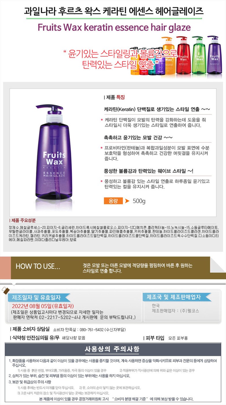 태그: 3개)후르츠왁스, 에센스, 케라틴, 헤어글레이즈500g(과일나라)