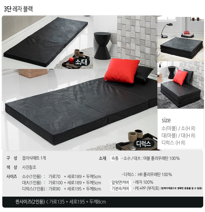 필수 표기정보 제품 소재 매트리스: 폴리우레탄/커버: 삼중직 원단(업체미제공으로 정확한 혼용률 알 수 없음) 색상 챠콜 치수 컨텐츠 참조 제품구성 매트리스 1개입+매트리스 커버 1장 제조자(수입자) 베드넷퍼니쳐…