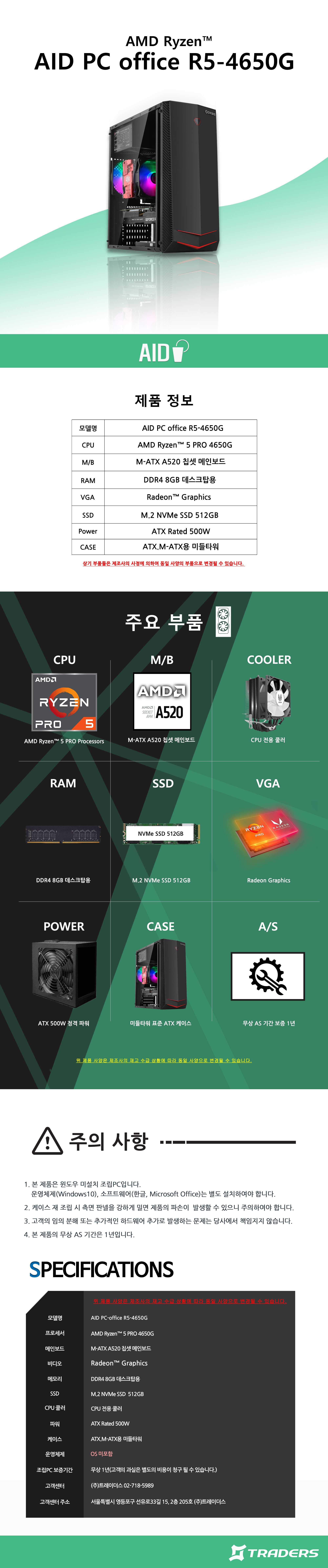 | 품명 및 모델명 | AID PC – Office R5- 4650G |