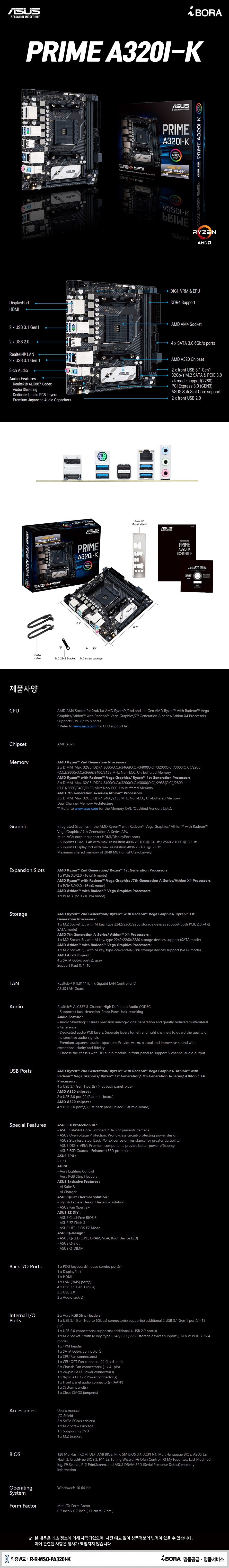 | 품명 및 모델명 | ASUS PRIME A320I-K 아이보라 |