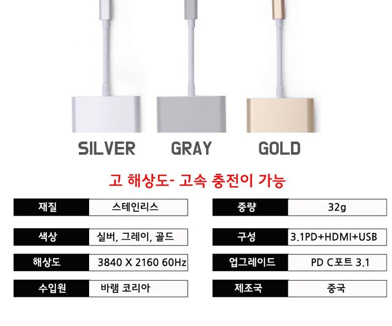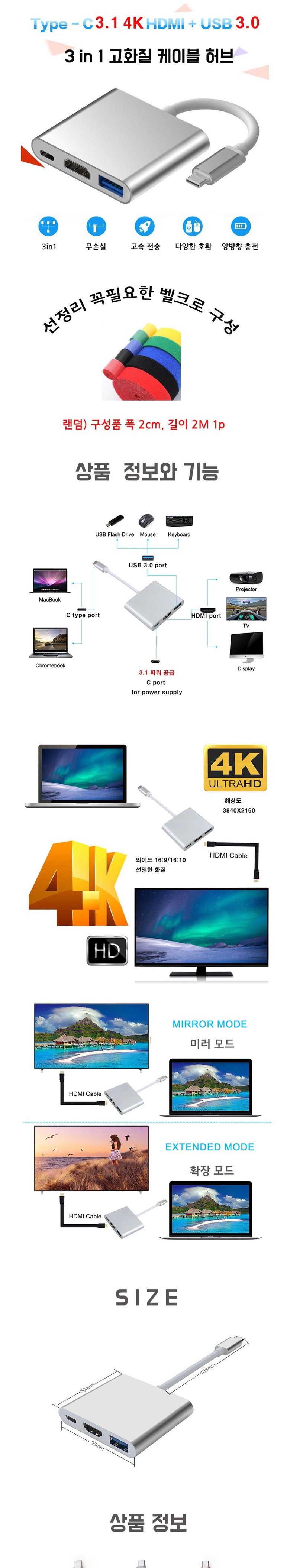 | 품명 및 모델명 | Baraem 3in1 HDMI C타입 3.1 고화질 케이블 허브 + 양면 벨크로 찍찍이 테이프 2M |