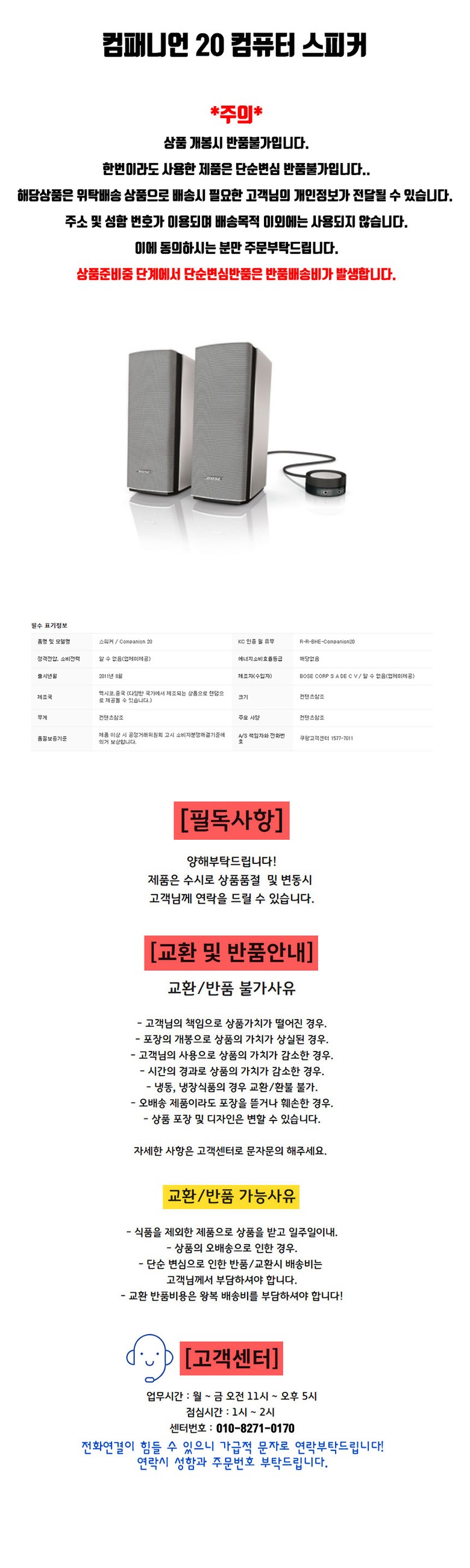 | A/S 책임자와 전화번호 | 상품 상세페이지 참조 |