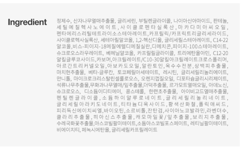 필수 표기정보 용량(중량) 상품 상세페이지 참조 제품 주요 사양 상품 상세페이지 참조 사용기한 또는 개봉 후 사용기간 상품 상세페이지 참조 사용방법 상품 상세페이지 참조 화장품제조업자…