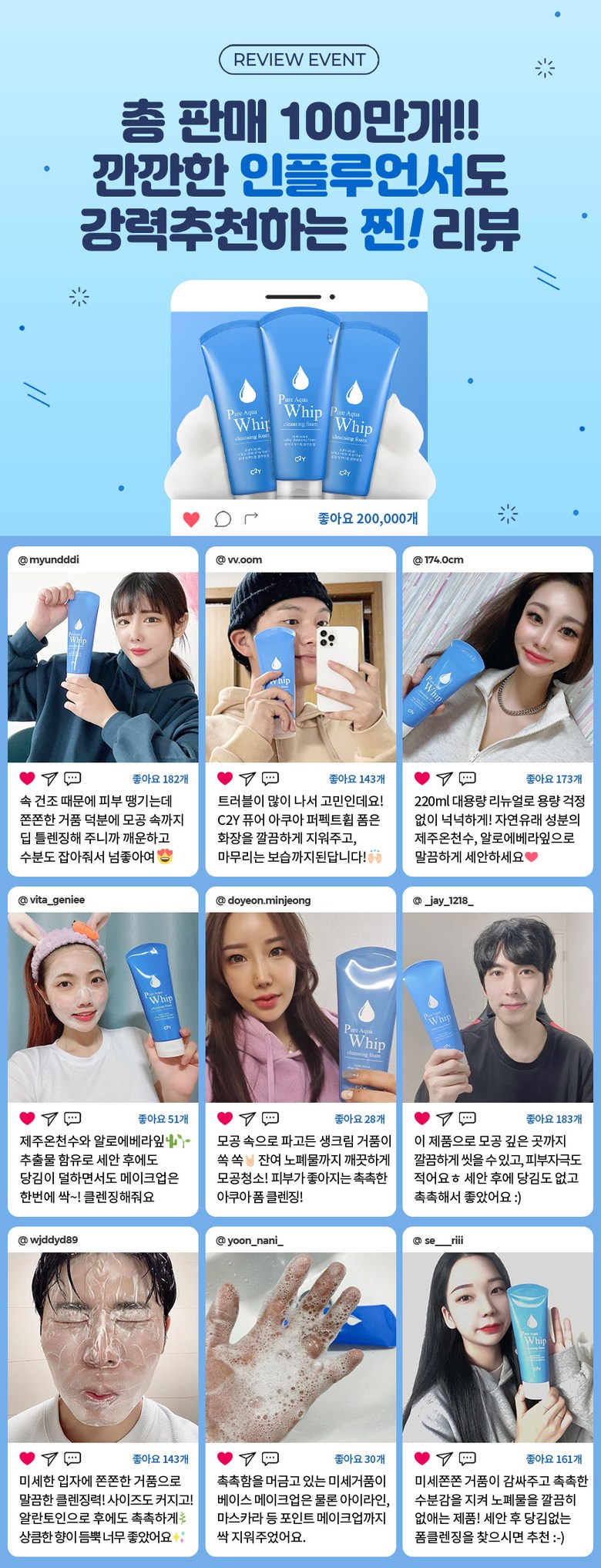 | 화장품법에 따라 기재, 표시하여야 하는 모든 성분 | 아쿠아 : 정제수, 팔미틱애씨드, 스테아릭애씨드, 미리스틱애씨드, 글리세린, 라우릭애씨드, 포타슘하이드록사이드, 솔비탄올리베이트, 코카미도프로필베타인, 포타슘코코일글리시네이트, 아라키딕애씨드, 올레익애씨드, 소듐클로라이드, 판테놀, 카프릭애씨드, 알란토인, 피이지-90M, 온천수, 알로에베라잎추출물, 에틸헥실글리세린, 다이소듐이디티에이,페녹시에탄올, 클로페네신, 1,2-헥산다이올, 향료, 부틸페닐메틸프로피오날,리날룰,벤질살리실레이트, 시트로넬올그린티 : 정제수,팔미틱애씨드,스테아릭애씨드,미리스틱애씨드,글리세정제수, 팔미틱애씨드, 스테아릭애씨드, 미리스틱애씨드, 글리세린, 라우릭애씨드, 포타슘하이드록사이드, 솔비탄올리베이트, 코카미도프로필베타인, 포타슘코코일글리시네이트, 아라키딕애씨드, 올레익애씨드, 소듐클로라이드, 판테놀, 카프릭애씨드, 알란토인, 피이지-90M, 부틸렌글라이콜, 병풀추출물, 녹차추출물, 다이소듐이디티에이, 페녹시에탄올, 클로페네신, 황색4호, 청색1호, 향료, 리날룰, 리모넨, 제라니올, 헥실신남알화산송이 : 정제수, 팔미틱애씨드, 스테아릭애씨드, 미리스틱애씨드, 글리세린, 라우릭애씨드, 포타슘하이드록사이드, 솔비탄올리베이트, 코카미도프로필베타인, 마이크로크리스탈린셀룰로오스, 아라키딕애씨드, 올레익애씨드, 숯가루, 소듐클로라이드, 카프릭애씨드, 화산재, 다이소듐이디티에이, 페녹시에탄올, 클로페네신, 향료, 헥실신남알, 부틸페닐메틸프로피오날, 시트로넬올, 리날룰, 알파-아이소메틸아이오논 |
