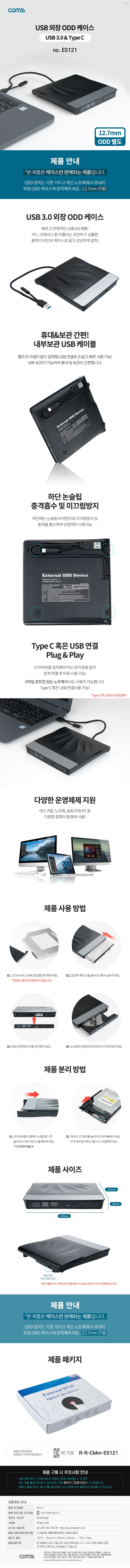 | 품명 및 모델명 | USB 3.0 외장ODD 케이스/ ES121 |