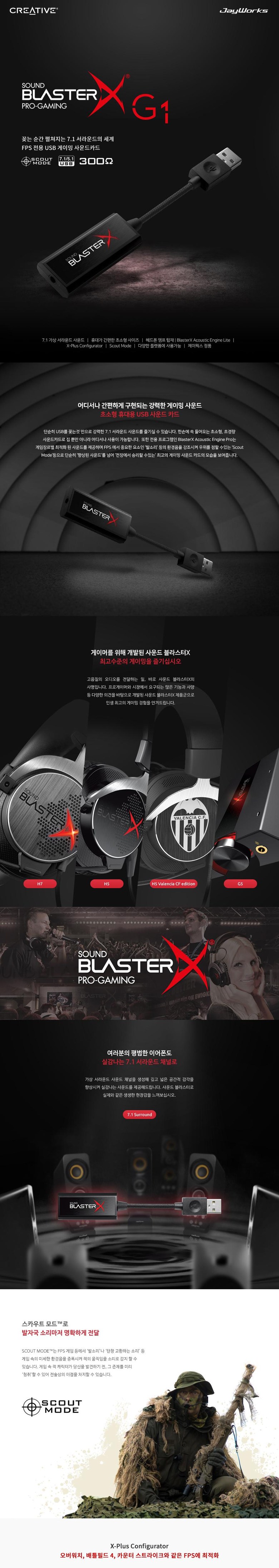 필수 표기정보 품명 및 모델명 사운드 블라스터X G5 외장형 사운드카드 KC 인증 필 유무 해당사항없음 정격전압, 소비전력 해당사항없음 에너지소비효율등급 해당사항없음 출시년월 2015년 03월 제조자(수입자) 크레이티브,제이웍스…
